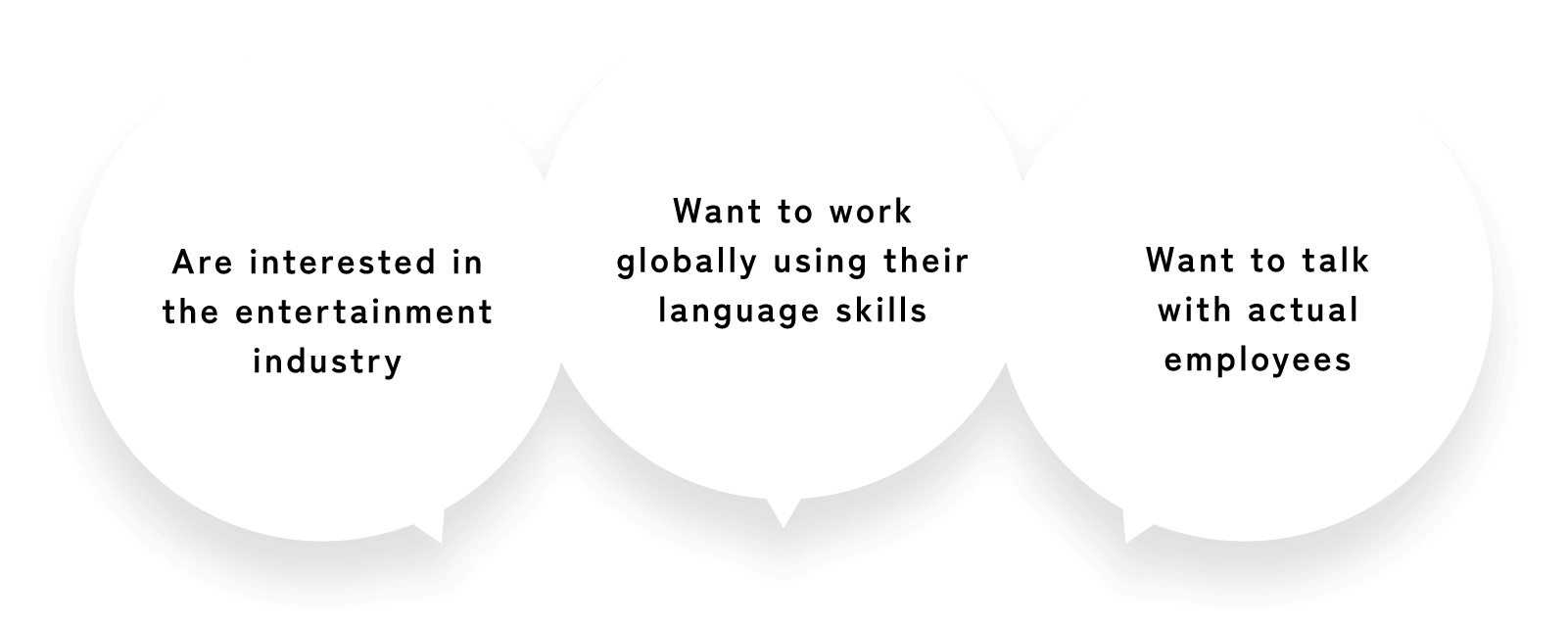Anyone is welcome to join, whether you are interested in the entertainment industry, curious about SEGA SAMMY, or want to talk to people who work here!