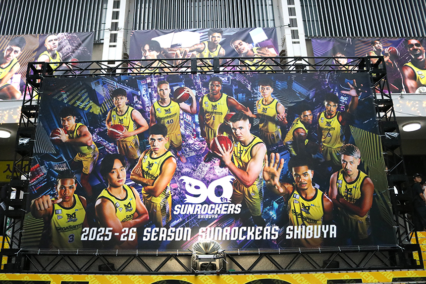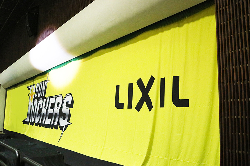90年という長い歴史において、サンロッカーズ渋谷は多くのパートナー企業の皆さまに支えられてきました。今シーズンもホームアリーナである青山学院記念館には毎試合、サンロッカーズ渋谷のロゴとチームカラーでデザインされた『大型横断幕』が設置されています。この横断幕を制作し、今シーズンの開幕戦で冠パートナーにもなっていただいたのが、オフィシャルトップパートナーとしてユニフォームへのロゴ掲載などもしていただいている、株式会社LIXILです。