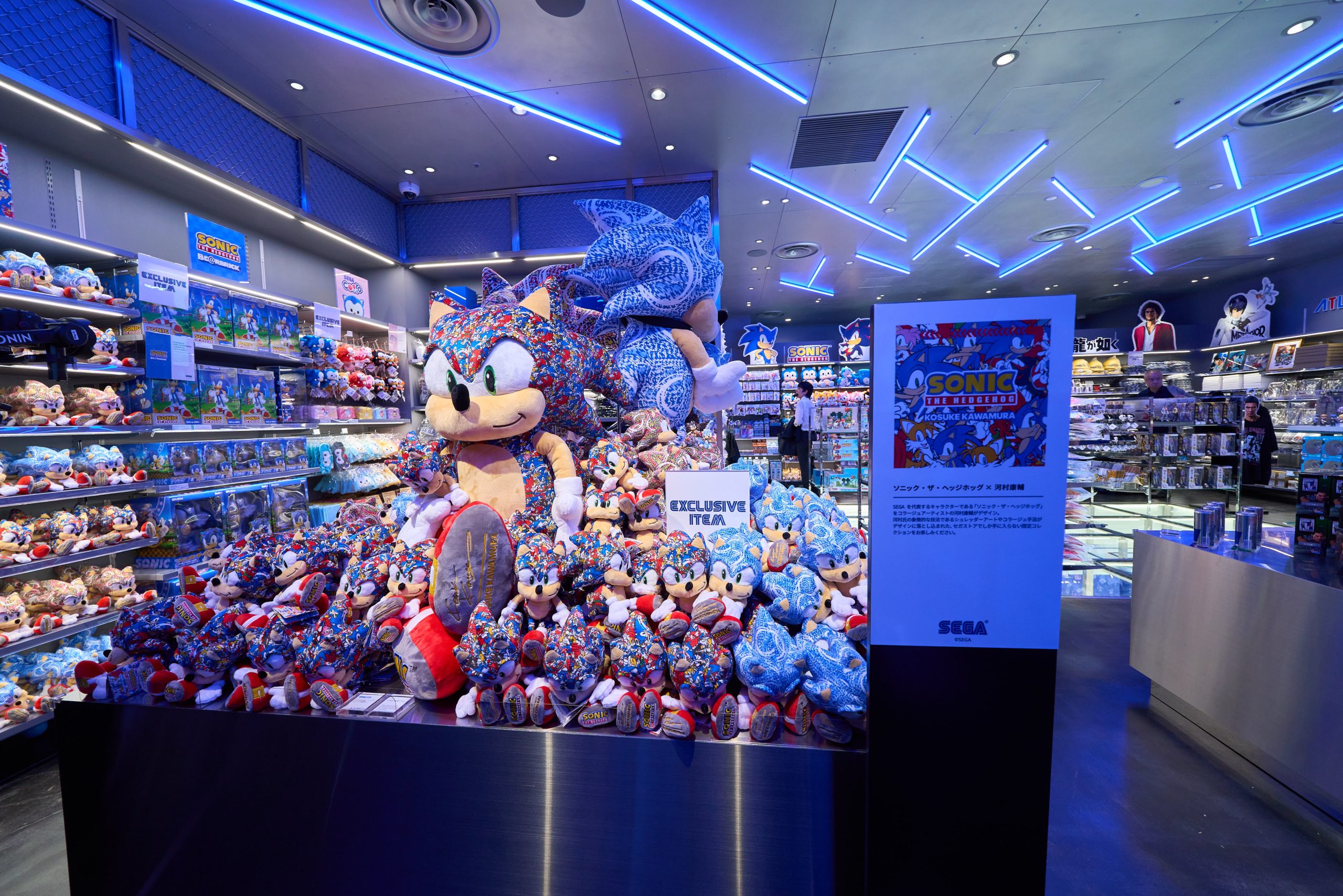 この戦略をリアルの場で推進する拠点のひとつとして誕生したのが、SEGA STOREです。ゲーム機やPC、スマートフォン等を通じてセガIPに親しんできたユーザーが関連商品を通じて作品の世界観を体験できる場所として、さまざまな仕掛けを凝らしています。