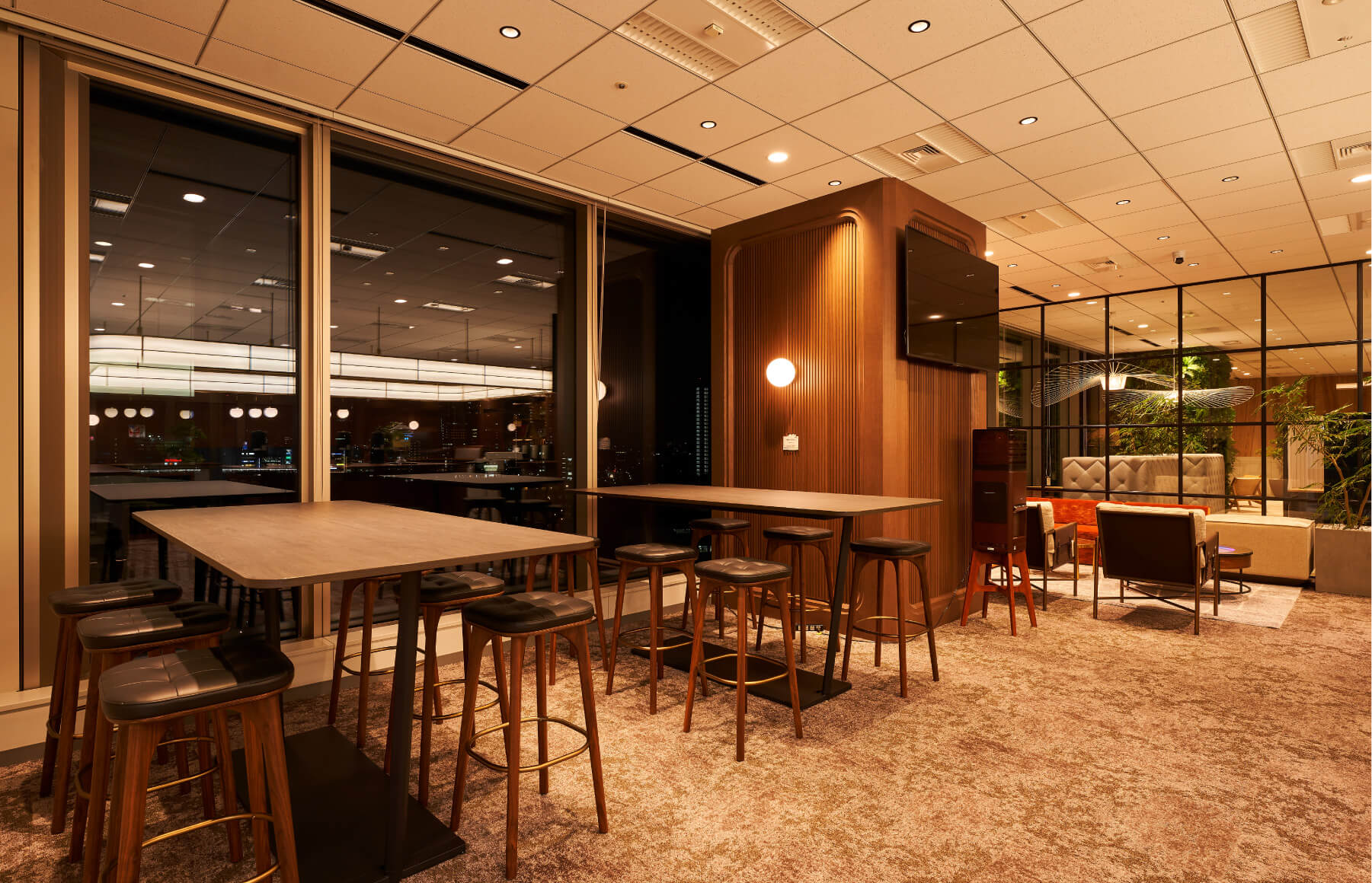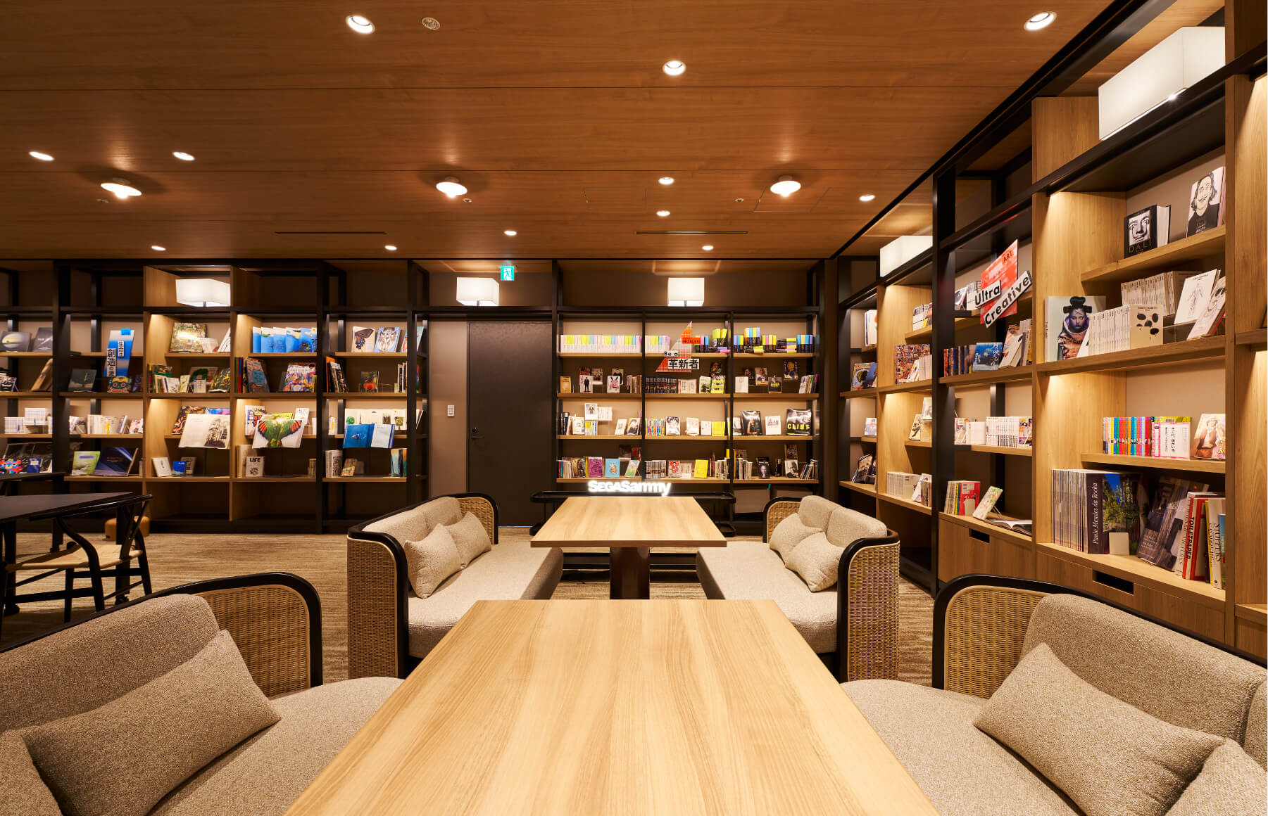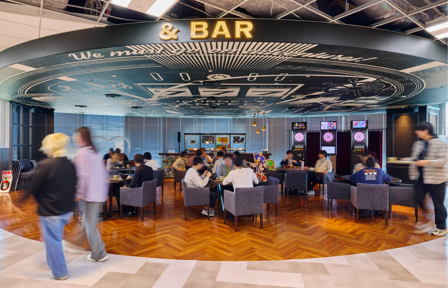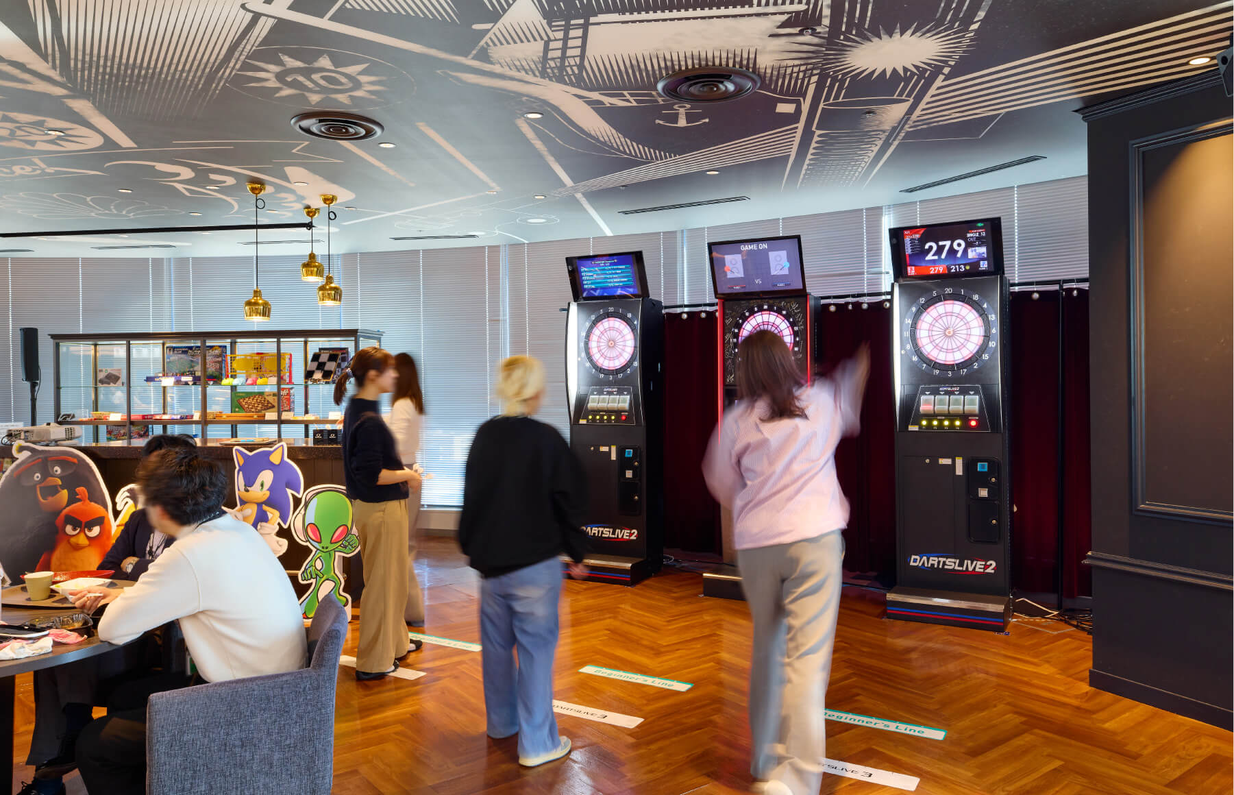 ダーツ・トランプ等を通して交流を深められる場所もあり、夜はお酒の飲めるバーもあります。