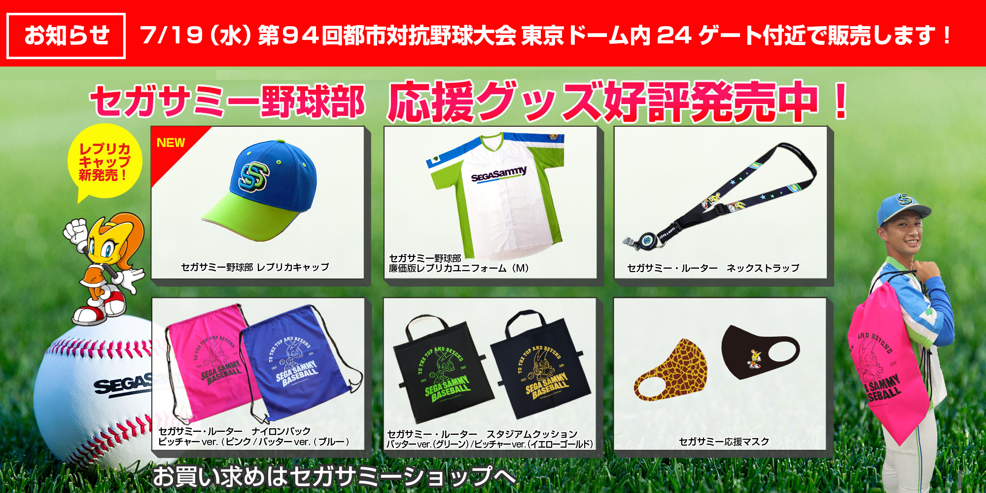 7/19(水)初戦セガサミー野球部グッズ販売決定!