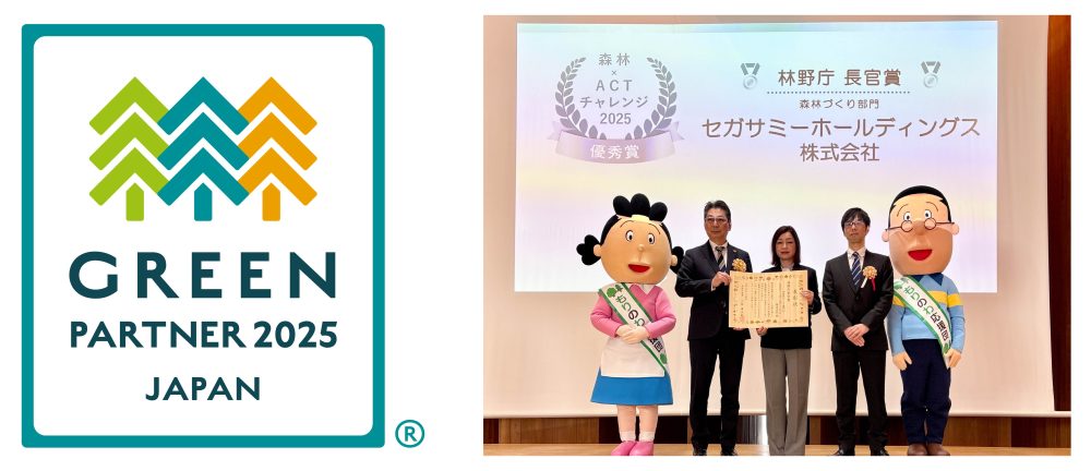 セガサミーホールディングス株式会社(本社:東京都品川区、代表取締役社長グループCEO:里見治紀)は、林野庁が主催する「森林×ACT(アクト)チャレンジ2025」(森林(もり)づくり部門)」において、林野庁長官賞(優秀賞)を受賞し、11月4日に江東区の木材会館で行われた表彰式に出席しました。この度の受賞は、「セガサミーの森」における17年にわたる継続的な森林保全活動や地域社会との交流、グループが運営するSNSなどでの積極的な情報発信などを評価されたものです。