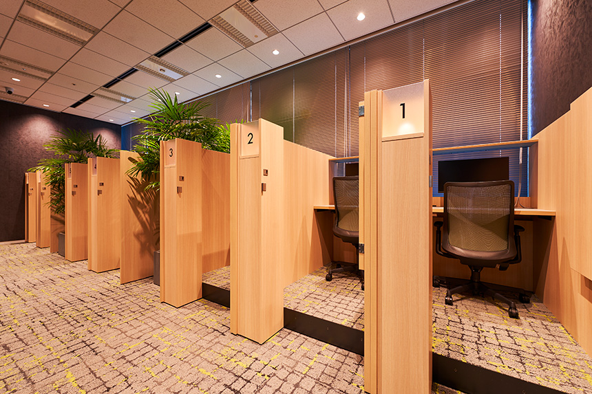 一般的に、人が深い集中状態に入るまでには20分前後かかるとも言われています。ところが執務席では電話や会話などでその前に集中が途切れてしまうことも少なくありません。ANCHORは、そうした“集中する時間”を確保するための場所として整備しました。