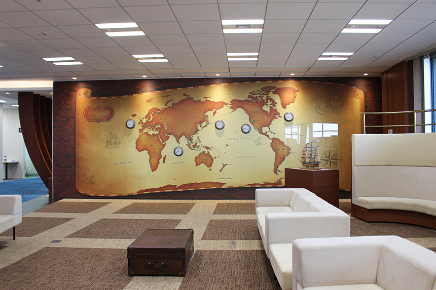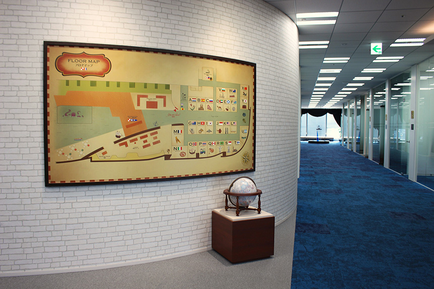 来客用会議室には、AからYまでの頭文字から始まる世界の港町の名称を採用し、セガサミーグループの世界観を反映しています。「Z」から始まる会議室はないのですが、それは終わりのない旅を意味しているためです。
