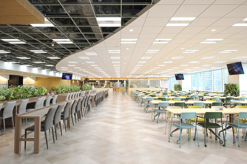 オフィスを語る上で、象徴的な空間の一つが、約480席を備え、1日約1,500名が利用する社員食堂「JOURNEY’S CANTEEN」です。