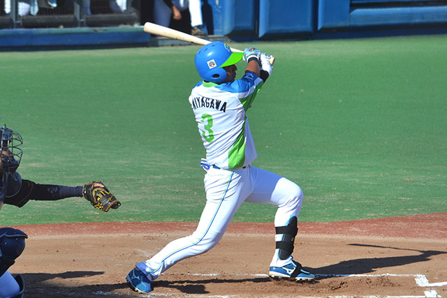 この試合初めて追いかける展開となった9回表は、1番北川がファーストゴロに倒れる。代打の吉田高彰が四球を選んで出塁するも、3番須田はセカンドフライ、そして4番高島は空振り三振に倒れて敗戦を迎える。